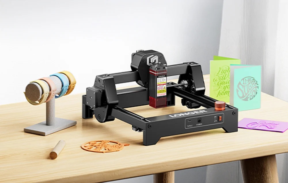 LONGER RAY5 mini 3,5 W laserový gravírovací stroj: Personalizujete doma malé predmety, dekorácie alebo prototypy DIY? Mini gravír Longer Ray5 s diódovým laserom s výkonom 2,5 W vám umožní začať pracovať bez nutnosti reorganizácie pracoviska alebo dielne. Zariadenie je zmontované z výroby, takže môžete začať svoj prvý projekt hneď po vybalení z krabice, namiesto toho, aby ste strávili hodiny montážou a kalibráciou.